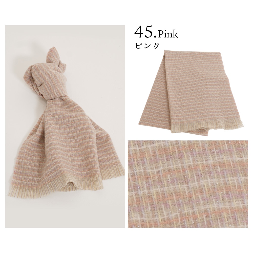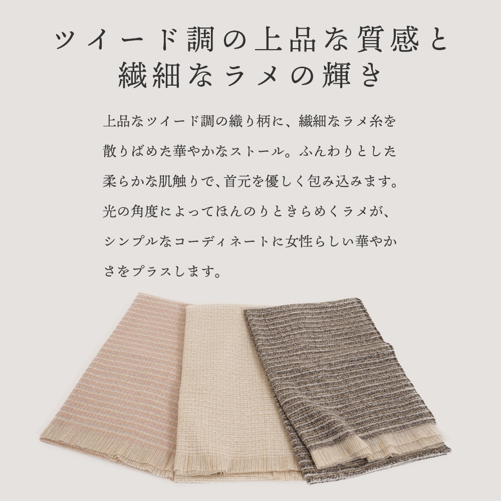 上品なツイード調の織り柄に、繊細なラメ糸を散りばめた華やかなストール。
