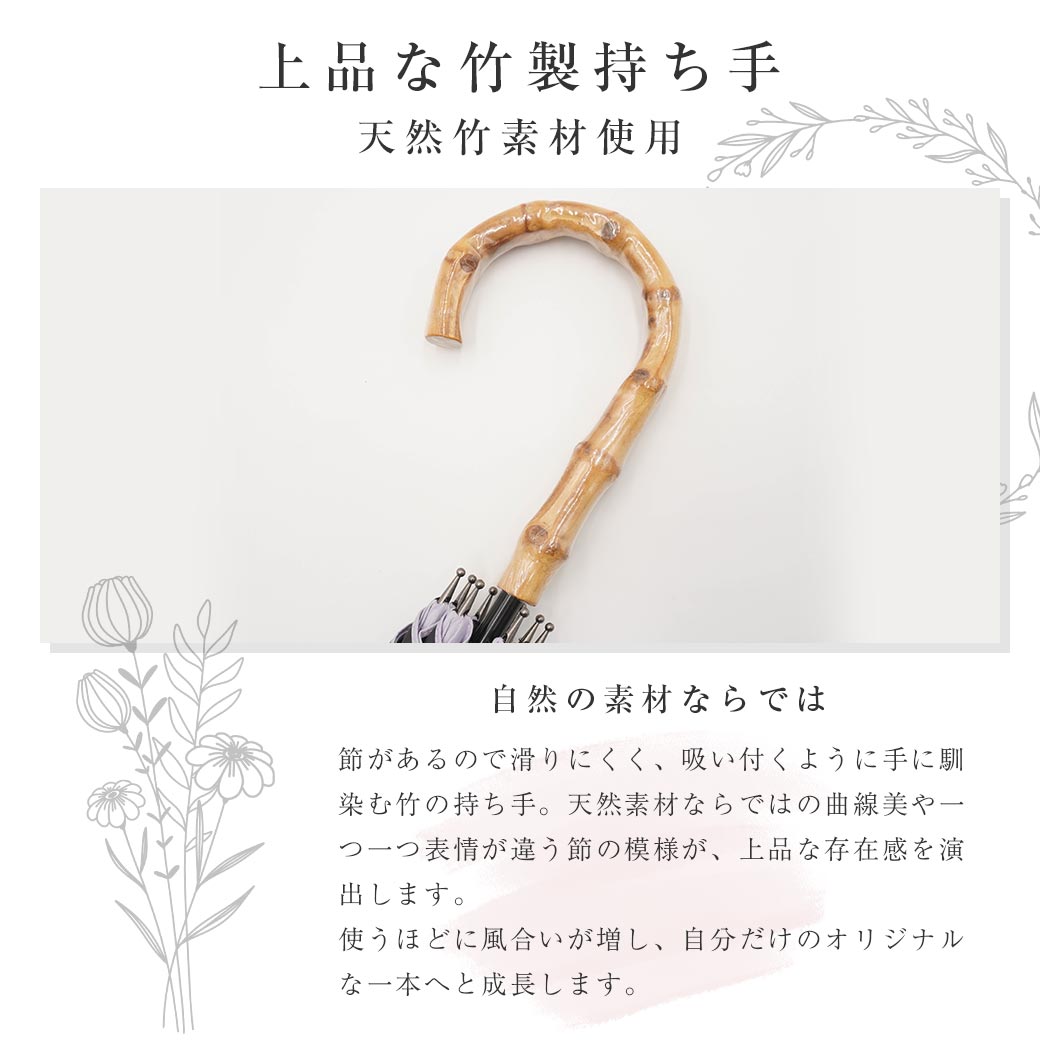 【2026新作】100%完全遮光 日傘/雨傘/晴雨兼用傘 ブラックコーティング 竹製ハンドル バンブーハンドル ショート傘 マルチボタニカル柄 親骨50cm