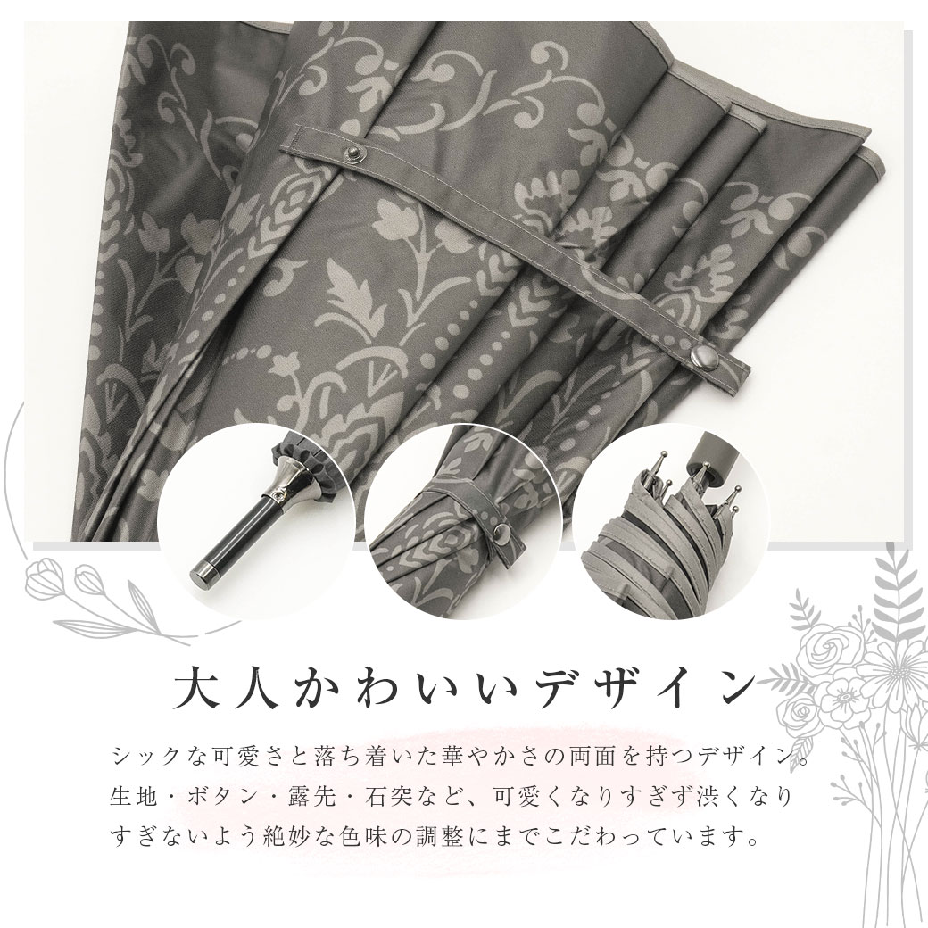 完全遮光 遮光率100% 一級遮光 UVカット UV遮蔽率100% 遮熱効果 撥水加工 晴雨兼用 日傘 長傘 ジャンプ傘 晴雨兼用 ダマスク柄 総柄 母の日のギフト プレゼント