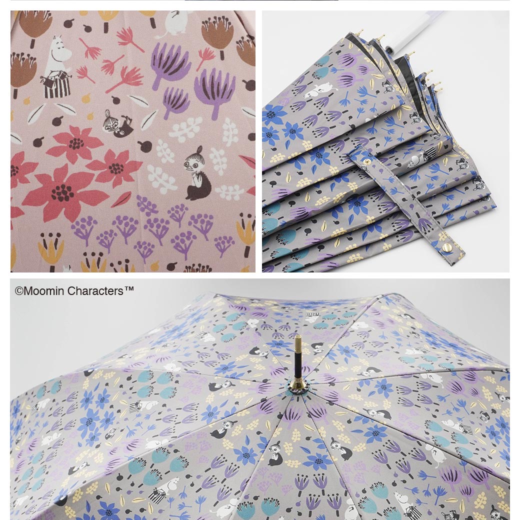 傘 UVカット UV遮蔽率100% 遮光率100% 完全遮光 近赤外線 晴雨兼用傘 雨傘 撥水 ジャンプ傘 日傘 レディース UV対策 紫外線対策 熱中症 日焼け対策 春 夏 プレゼント ギフト 梅雨 超軽量 軽量 丈夫 母の日 ムーミン moomin リトルミイ グレー ピンク 花柄 総柄 シンプル おしゃれ