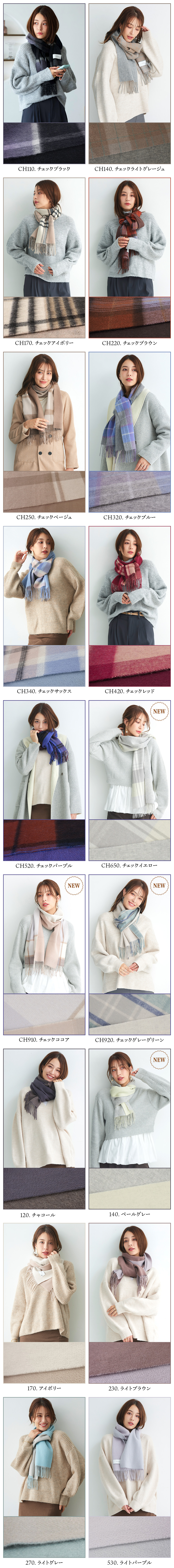 【2025新色】カシミヤストール[チェック柄][男女兼用] 60cm×200cm