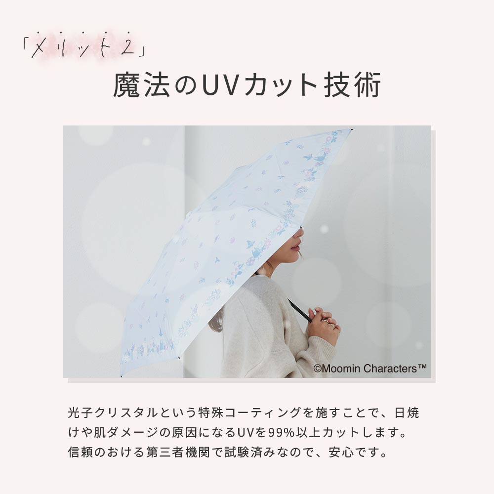 傘 UVカット UV遮蔽率99%以上 雨晴兼用傘 雨傘 撥水 折りたたみ傘 日傘 ポンジー生地 地球環境 環境配慮 SDGs CO2削減 パラソル アンブレラ レディース パステルカラー ペールカラー ニュアンスカラ― ムーミン moomin リトルミイ フラワー柄 花柄 小花柄 UV対策 紫外線対策 春 夏 熱中症対策 美容