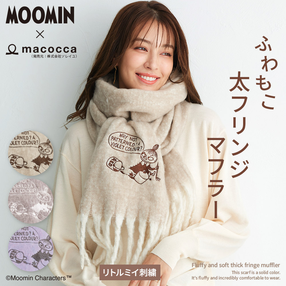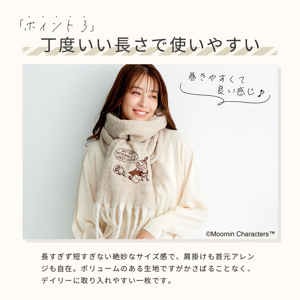 【2025新作】【ムーミンコラボ】リトルミイ刺繍 ふわもこ太フリンジマフラー 37cm×200cm Moomin マフラー