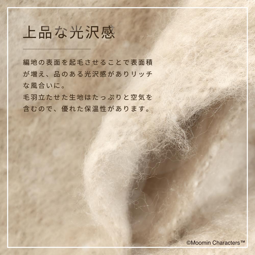 編地の表面を起毛させることで表面積が増え、品のある光沢感がありリッチな風合いに。毛羽立たせた生地はたっぷりと空気を含むので、優れた保温性があります。