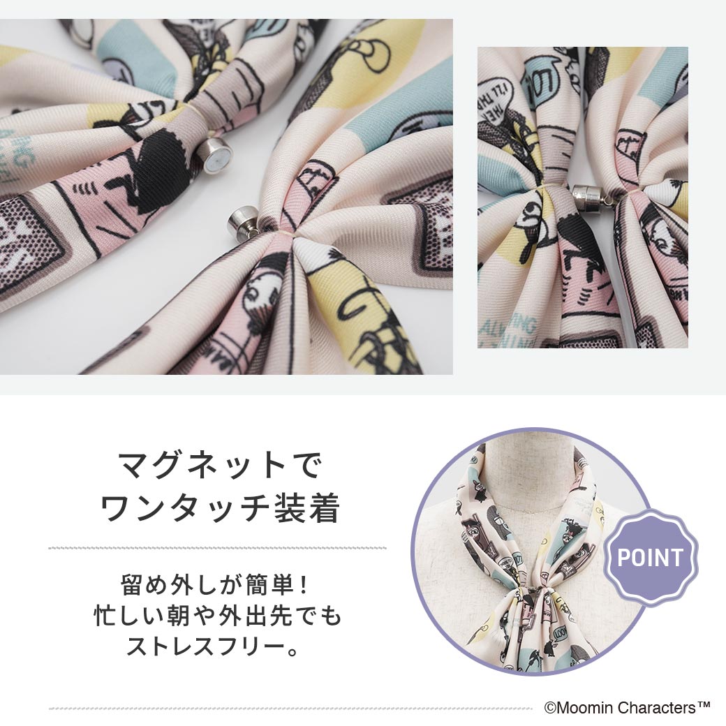 スカーフ 小さめ おしゃれ かわいい リボンスカーフ プリント ワンタッチ 日焼け対策 薄手 接触冷感 涼しい ブルー ベージュ ネックカバー レディース パステルカラー ペールカラー ニュアンスカラ― ムーミン moomin リトルミイ 北欧 総柄 日よけ UVカット UV対策 冷房対策 春 夏 プレゼント ギフト
