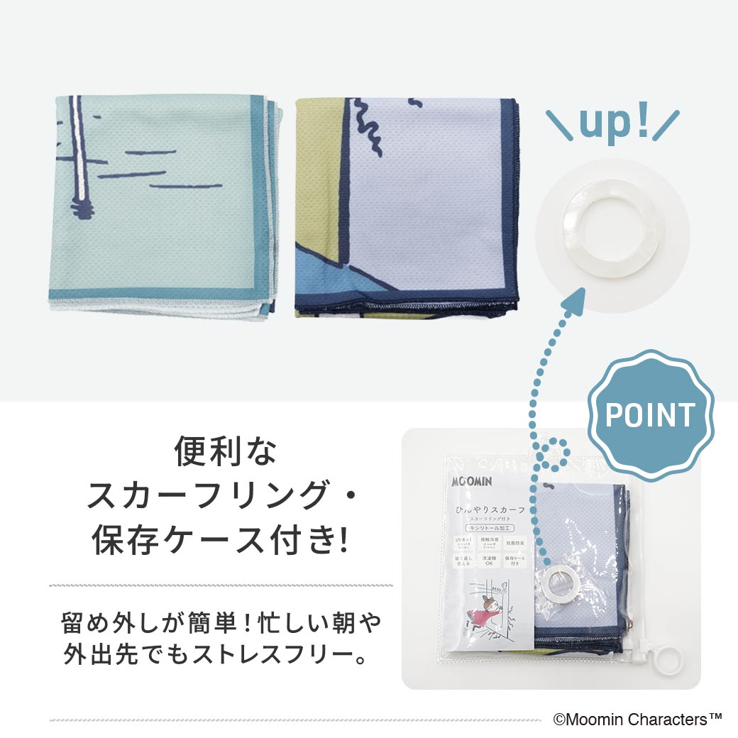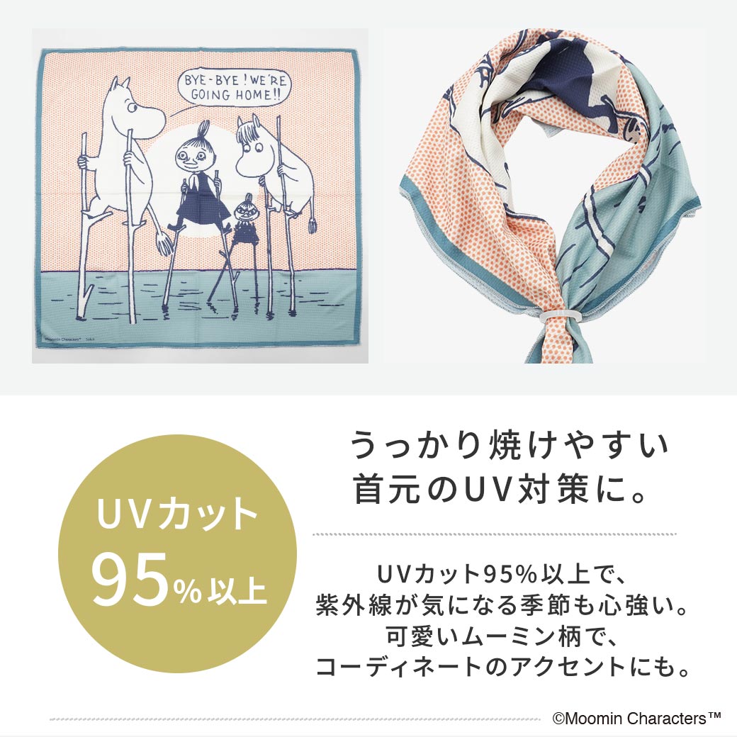 スカーフ おしゃれ かわいい 贈り物 通勤 旅行 ワンタッチスカーフリング付き 日焼け対策 薄手 接触冷感 涼しい ネイビー グリーン ネックカバー レディース イラスト ファッション スクエア ムーミン moomin リトルミイ 総柄 北欧 日よけ UVカット UV対策 冷房対策 春 夏 プレゼント ギフト