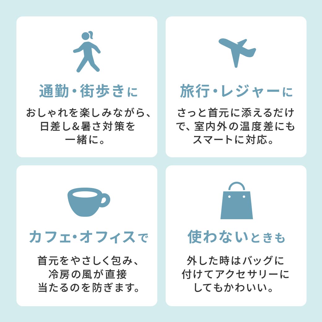 さっと首元に添えるだけで、室内外の温度差にもスマートに対応。